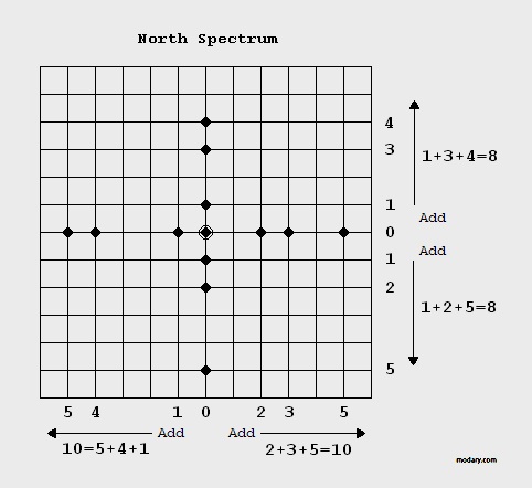 On application of the principle, the relative-notes surrounding a note are treated as if they are each an equally weighted object, and they are all placed apart from each other at the same type of distance that they encounter as they exist in the chromatic dimension. In physical science, it is known that the increase in downward-force of the weight is equal to the distance from the center point or fulcrum. In the search for new spectrums, however, we may be surprised to realize that when such a balance occurs in the chromatic dimension is always seconded by the same point being balanced in the perpendicularly drawn 'Reflective Dimension' that is founded by the Perfect 5th of the Circle of 5ths. This is evident in both spectrums analyzed below. |