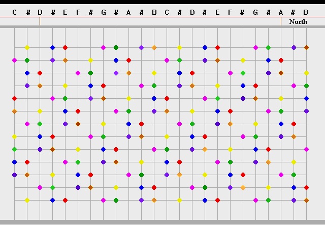 Eventually there could be made a set of regiments with which to qualify modes as useful to the theory of operation of the system: A mode has to be a member of a spectrum, which by definition contains a center-mode that is balanced in both the chromatic dimension and the reflective dimension; a mode should not have more than three notes in a row; and a mode should have no count of adjacent unoccupied spaces greater than two. Only after testing the functionality of the modes with the Sytem's Map could any certainty be had that the correct regiments were being used to achieve the correct set of modes for a Modary. The extensive research of Tonentity Publishing™ ultimately determined there to be 17 spectrums, with 7 modes each, equaling 119 modes. |